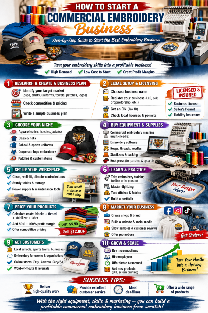Embroidery has become more than just a craft; it’s a growing and profitable business opportunity. From personalized gifts to corporate branding, custom apparel, and sports team uniforms, the demand for high-quality embroidery continues to rise every year. Many aspiring entrepreneurs are now exploring how to start a commercial embroidery business and turn it into a sustainable source of income.